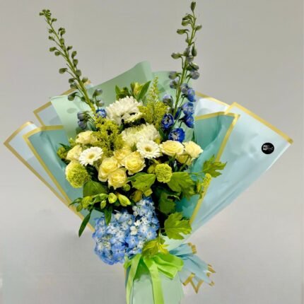 Bring the freshness of spring into any home with our Spring Celebration – a delightful mix of premium seasonal blooms including pink gerbera daisies, yellow chrysanthemums, peach gerbera daisies, purple asters, green hydrangeas, and fresh greens, accented with decorative eggs for a festive touch, all elegantly arranged in a sleek black rectangular container. This vibrant floral display captures the essence of renewal and joy, perfect for Easter, Mother’s Day, or welcoming the new season.