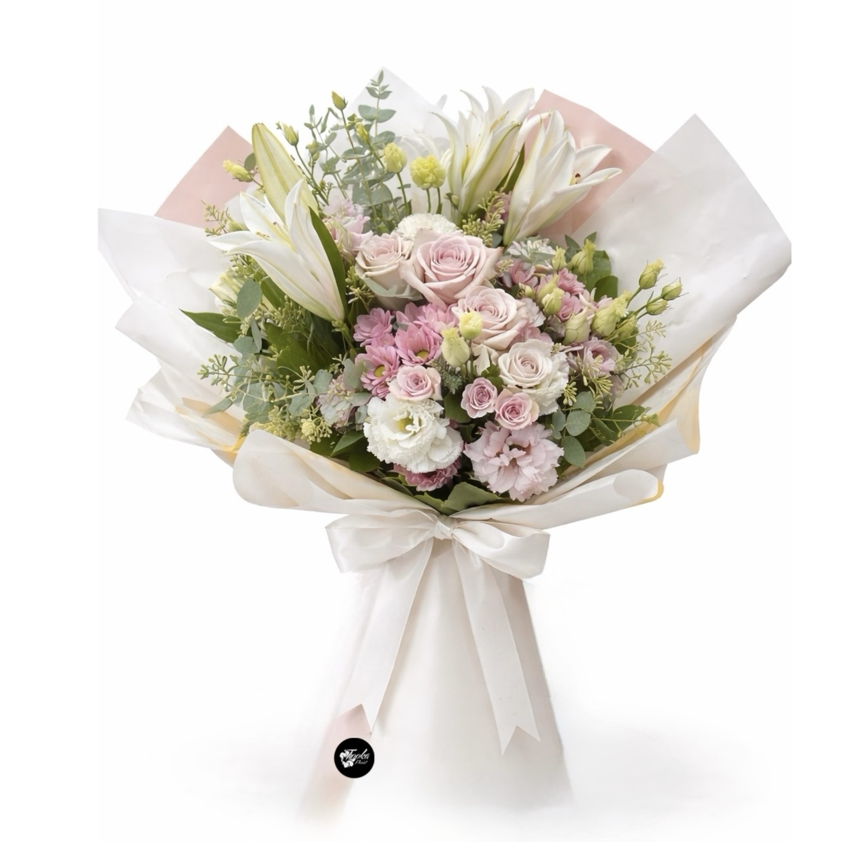 The “Gorgeous Pink Bouquet” is a delicate and stunning floral arrangement, perfect for gifts, home decor, or special occasions. This charming centerpiece features a beautiful mix of pink roses, lilies, and carnations, accented with lush green foliage and soft white blooms, all elegantly wrapped in a white and pink sleeve with a gold ribbon. Ideal for birthdays, Mother’s Day, or adding a touch of softness to your space, this bouquet exudes timeless beauty. Search for “gorgeous pink bouquet” or “pink flower gift” to explore more!