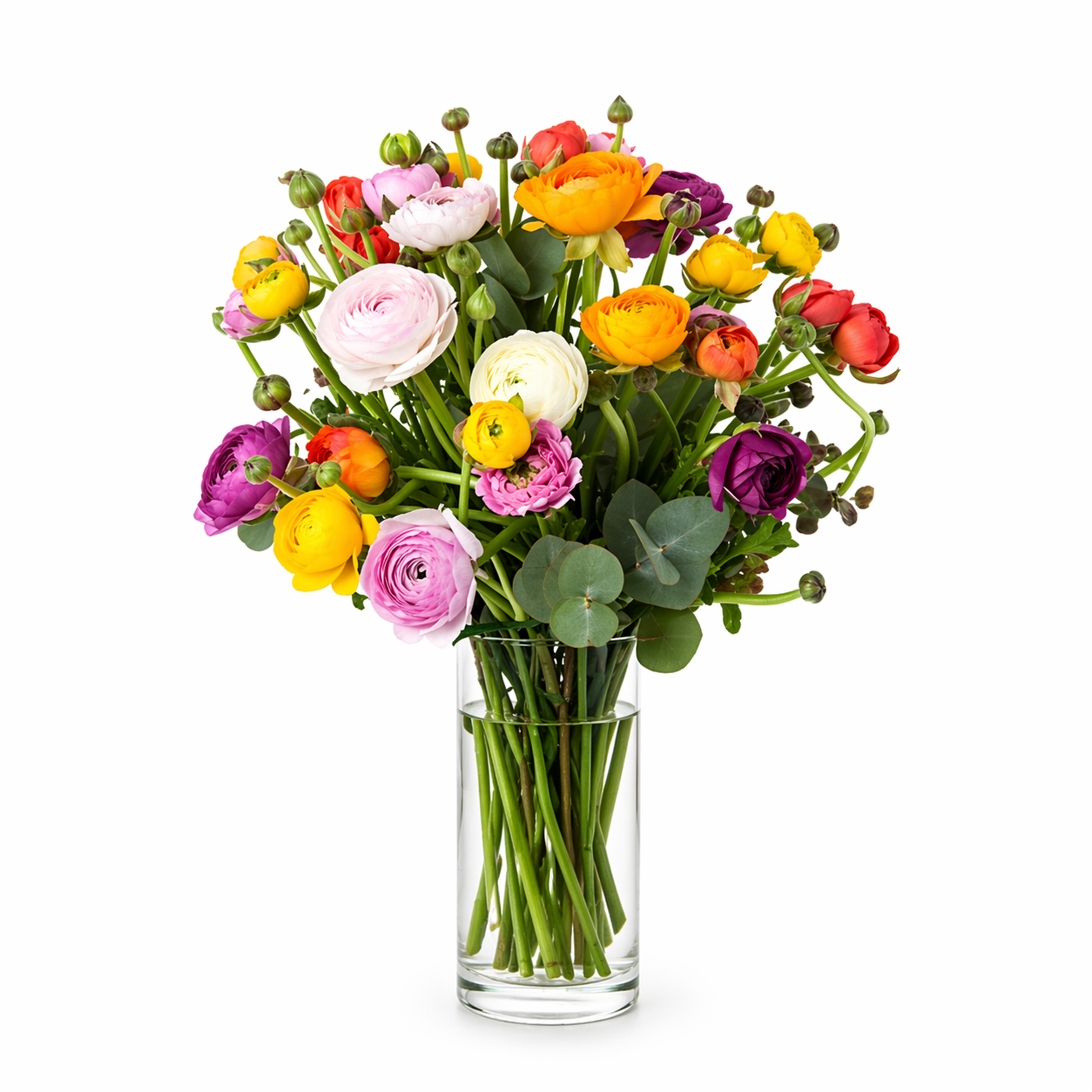 - A vibrant mix of premium ranunculus in a full spectrum of colors