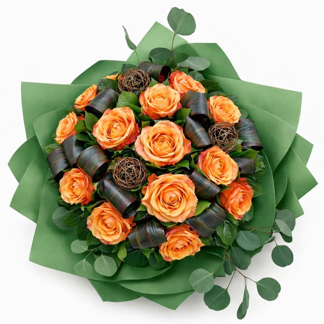 Premium fresh flowers including peach and orange roses